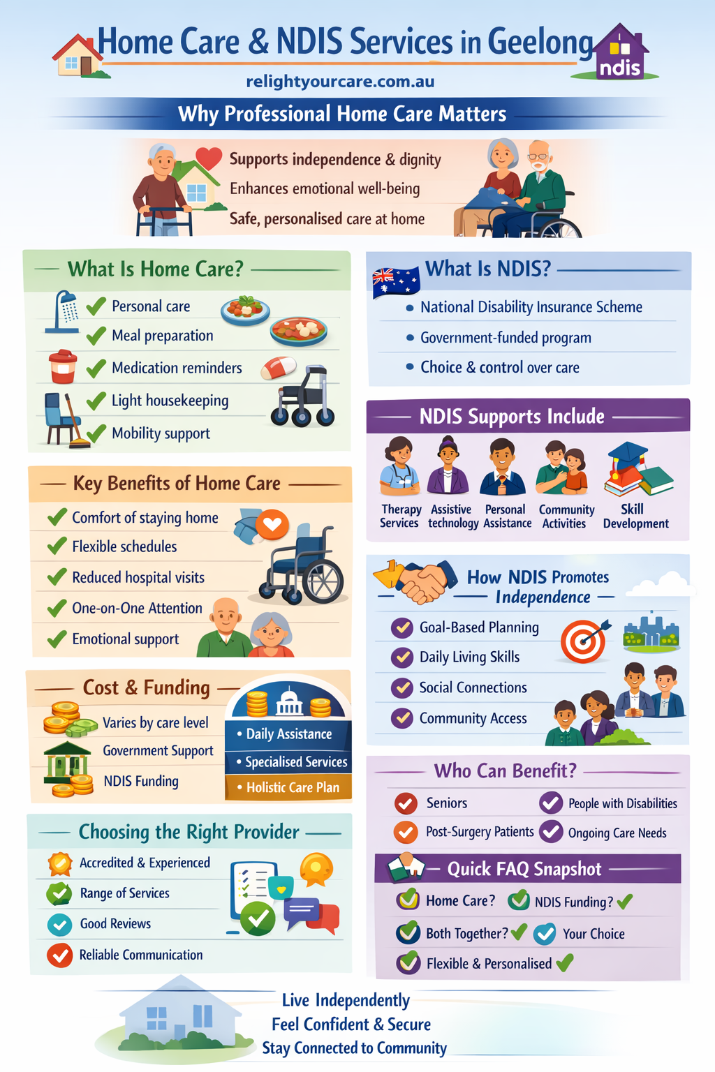 Home care and NDIS services in Geelong offer essential support for individuals seeking to maintain independence and improve their quality of life. Whether you’re exploring home care Geelong options or navigating NDIS Geelong, the key is finding a solution that aligns with your personal needs and goals.